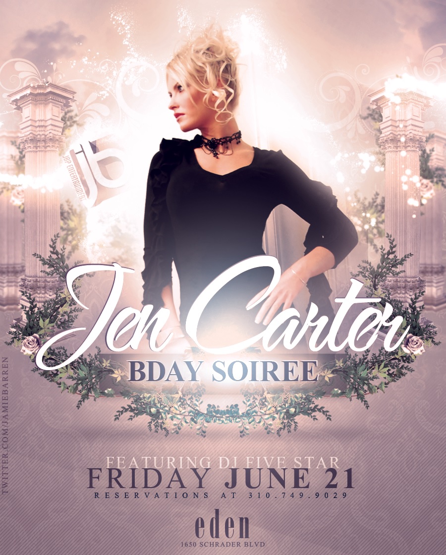 Friday, June 21st 2013 celebrates the birthday of actress / model JEN V CARTER, featuring music by Deejay Five Star, Bottles Poppin’ & Celebrities Galore! Checkout Fridays at Eden online http://youtu.be/9PX-1N75lrM